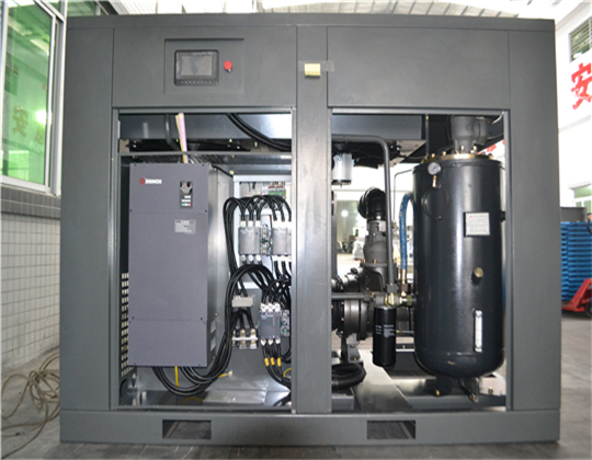 4,變頻螺桿空壓機(jī)的應(yīng)用,機(jī)箱的噪音低于一般空壓機(jī)。